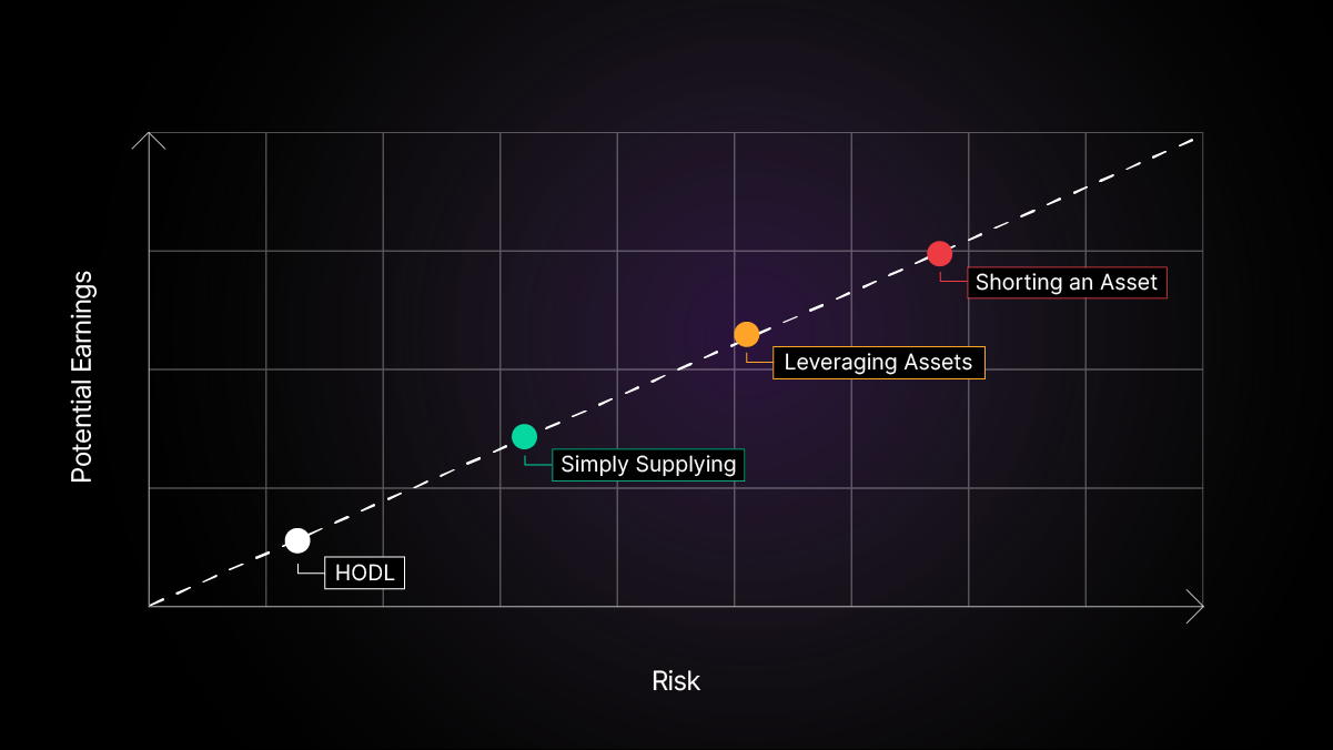 Simply supplying assets to Lend is one of the easiest and safest ways to earn with crypto, as you’re not at risk of impermanent loss, and there’s no need to provide an asset pair, compared to DEXs like Pancake Swap, Osmosis, and Kava Swap.